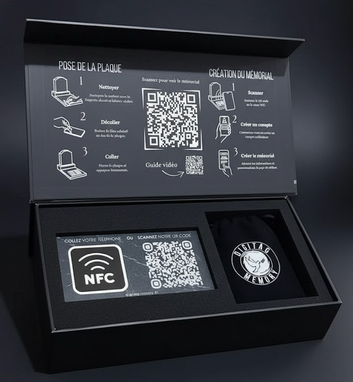 Une fois commandée, vous recevez votre plaque Digitag Memory dans son coffret complet, prête à être installée.